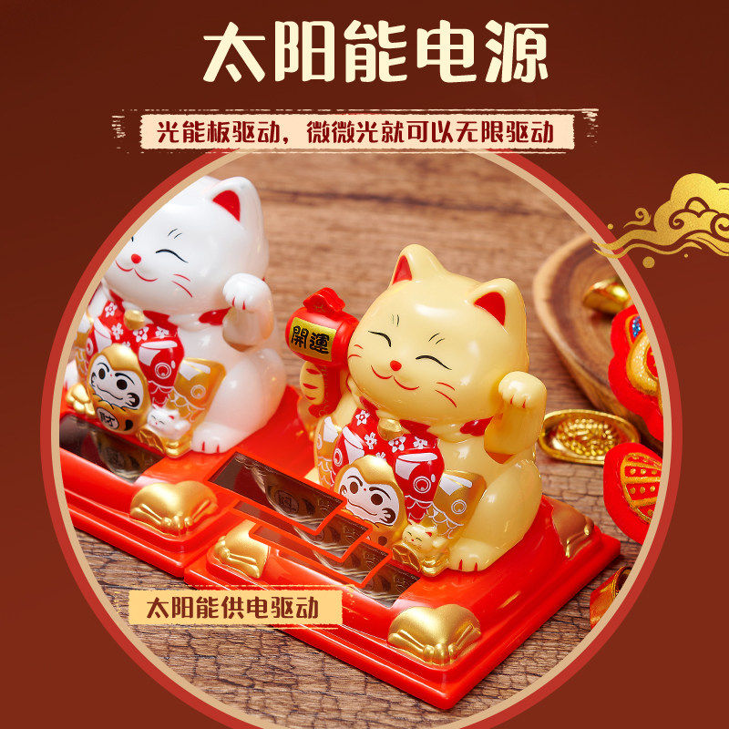 招财猫摆件自动招手摇手开业礼物收银前台入户车载家用旺宅太阳能