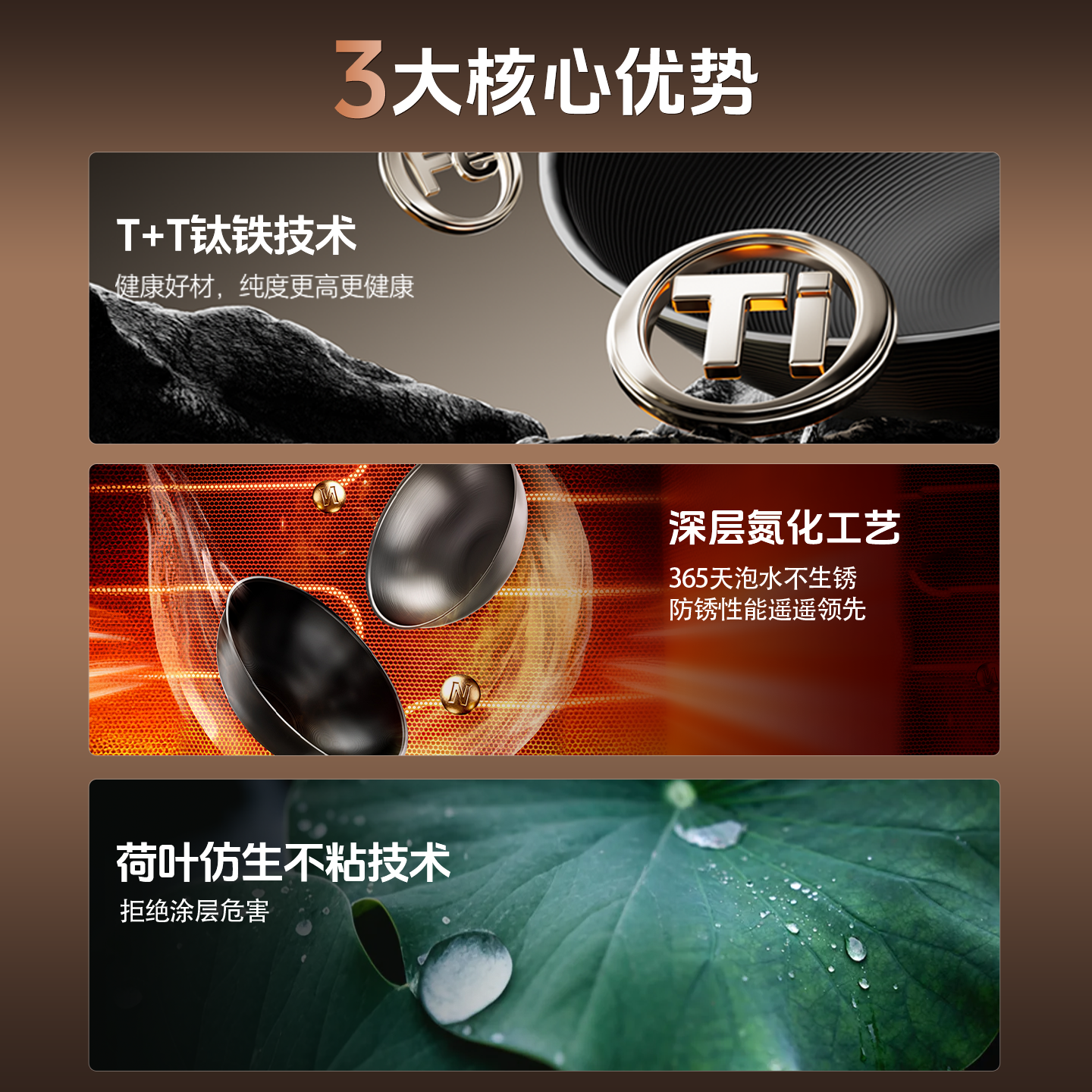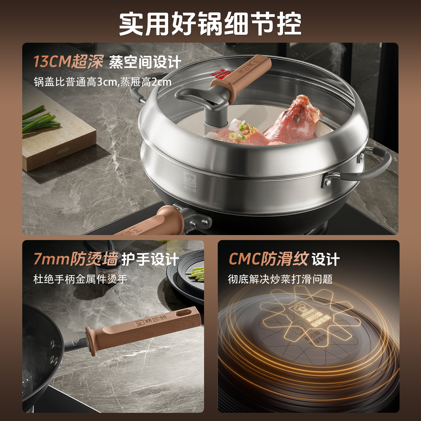 【发布会新品套装】康巴赫钛香铁锅不粘锅无涂层炒锅家用炒菜锅