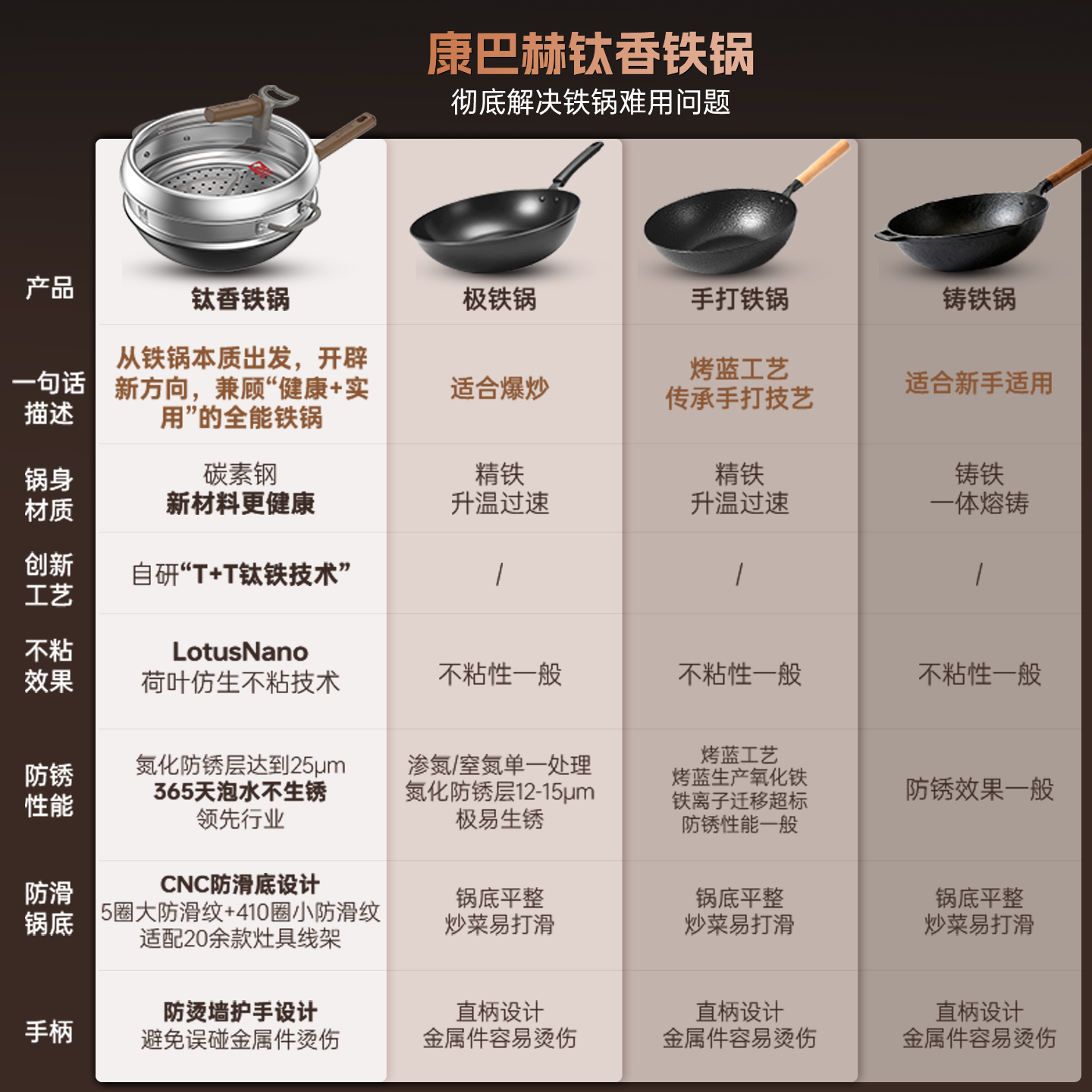 康巴赫有钛铁锅不粘锅无涂层炒锅家用炒菜锅电磁炉燃气专用锅子