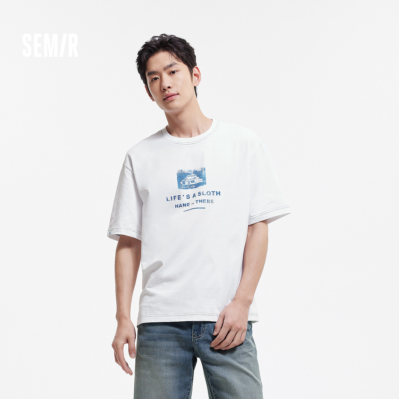 森马×蓝续联名款短袖T恤男夏季纯棉字母印花针织衫宽松圆领上衣