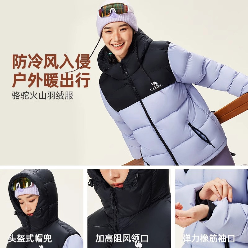 骆驼火山羽绒服女装2025秋冬新款防寒短款加厚保暖防风连帽外套男