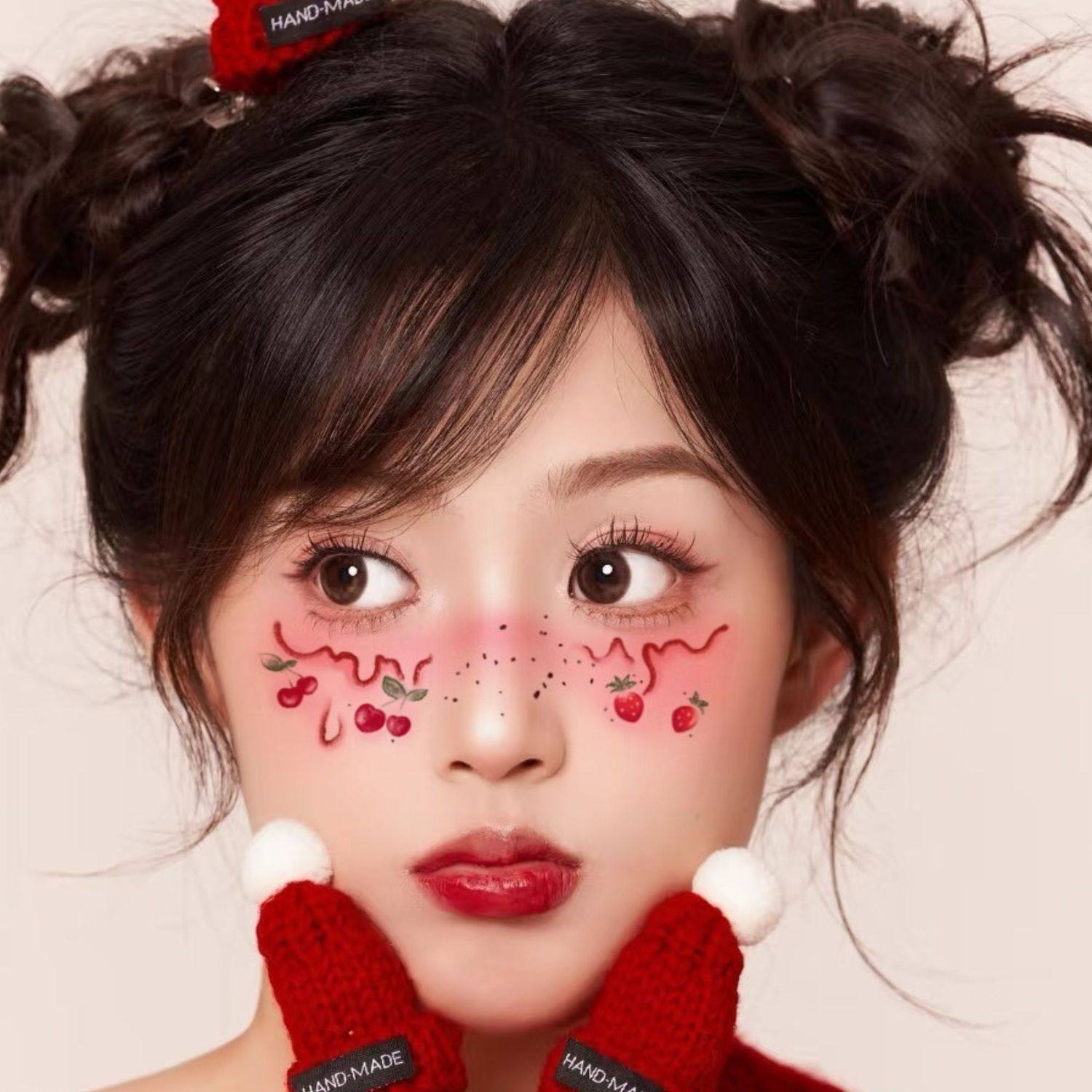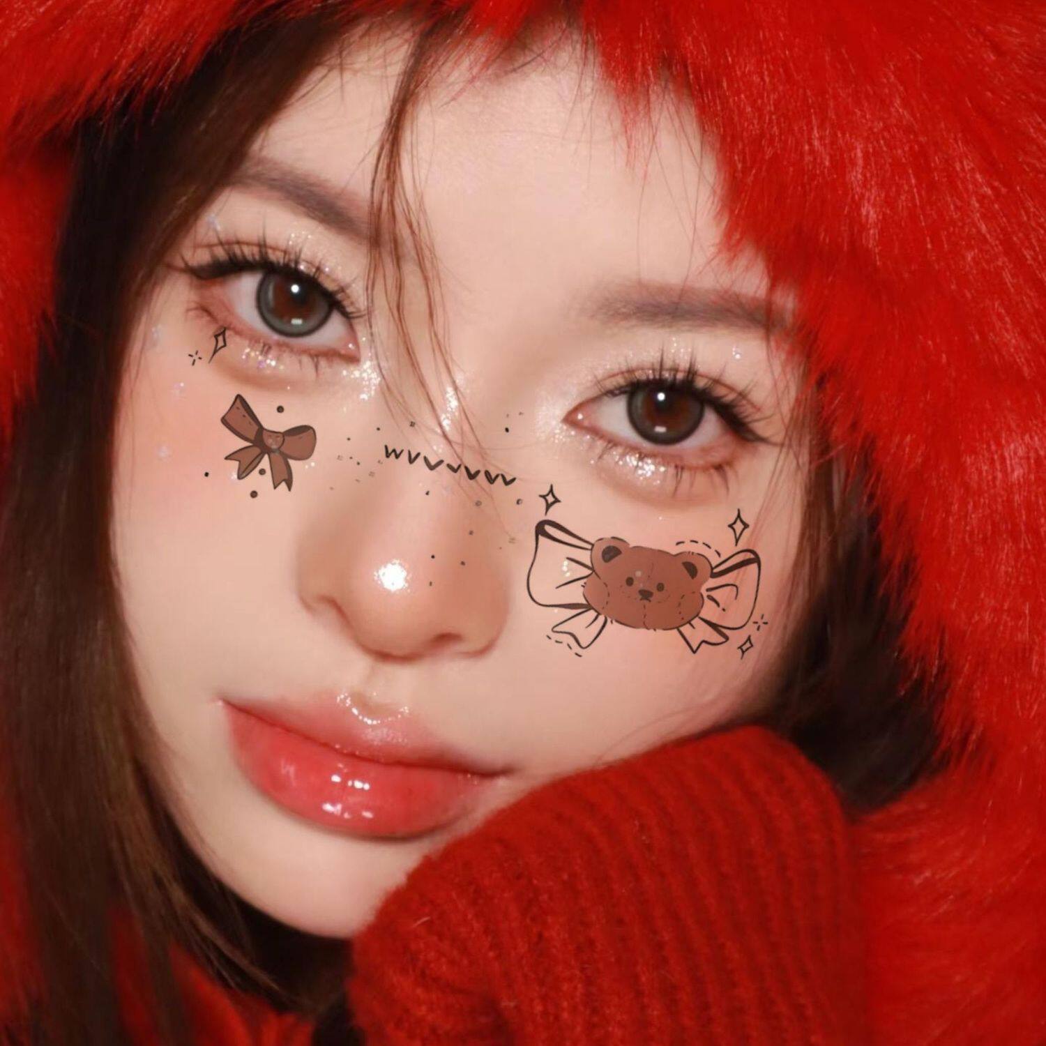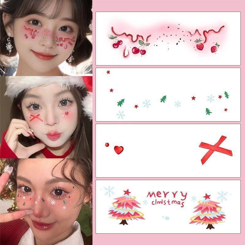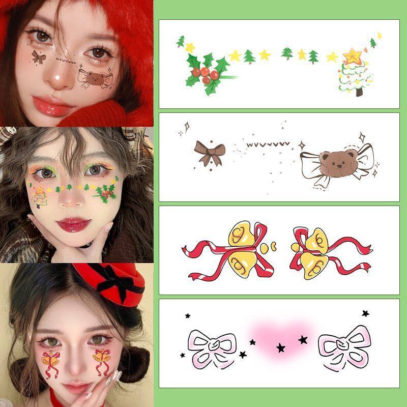 圣诞节蝴蝶结腮红妆容脸贴纹身贴氛围感COS派对拍照出片甜美持久