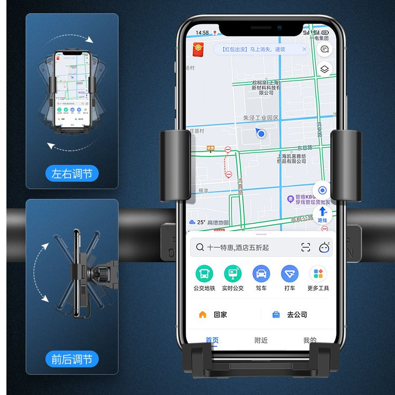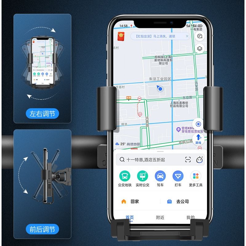 新款电动车手机支架防抖固定防震外卖骑手电瓶车摩托车自行车山地车手机导航架黑色简约商务可旋转免工具安装