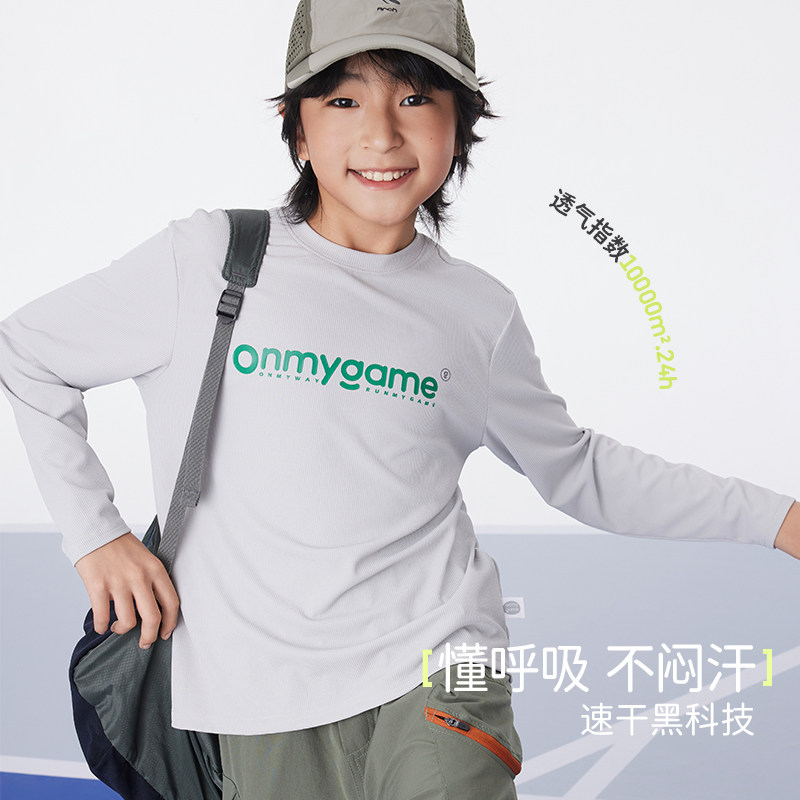 onmygame【氧气格子】男女童T恤2025新款儿童春季长袖速干上衣