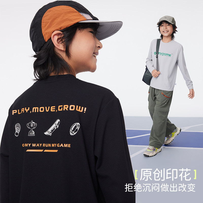 特步童装男童速干长袖T恤2025秋冬新款儿童防晒上衣中大童运动长t