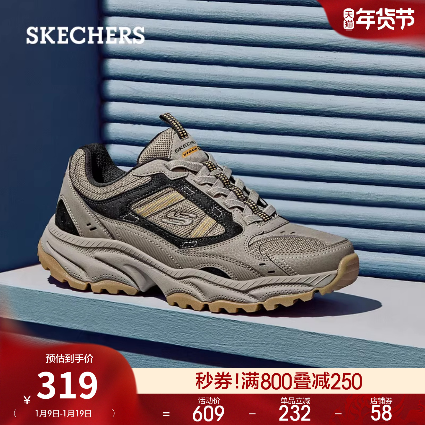 斯凯奇秋冬新款男子复古厚底老爹鞋百搭舒适户外鞋潮流运动休闲鞋