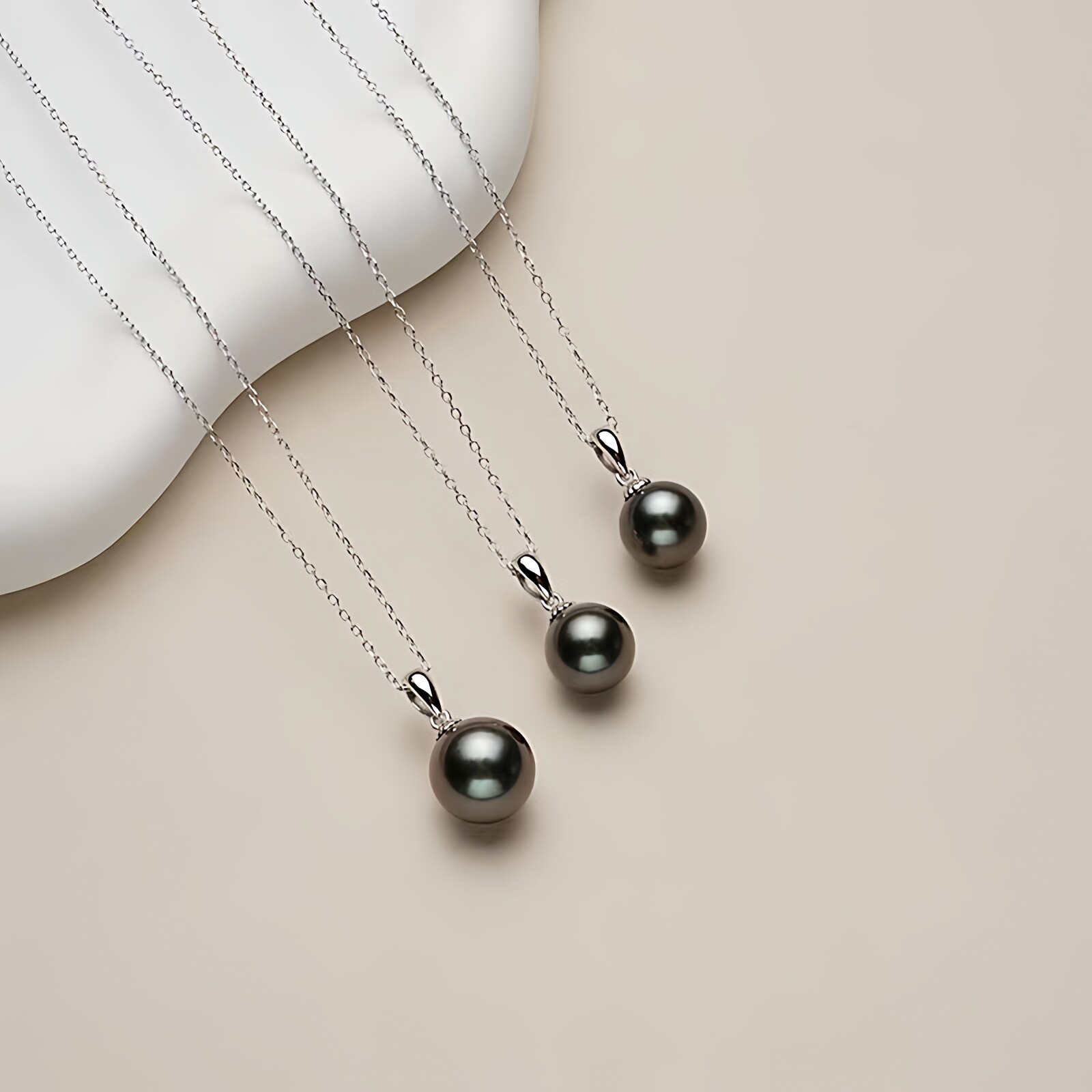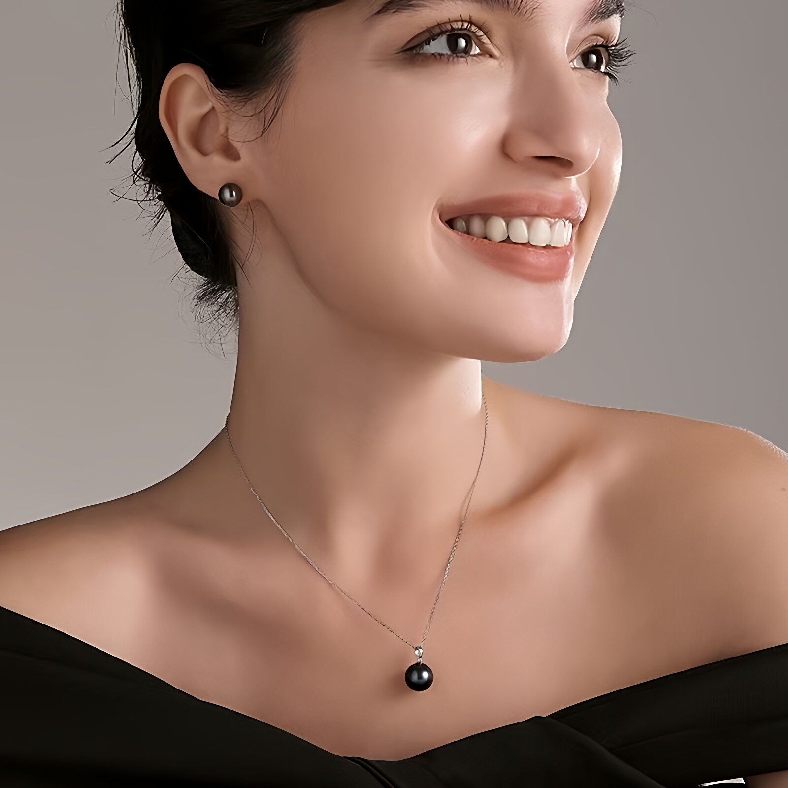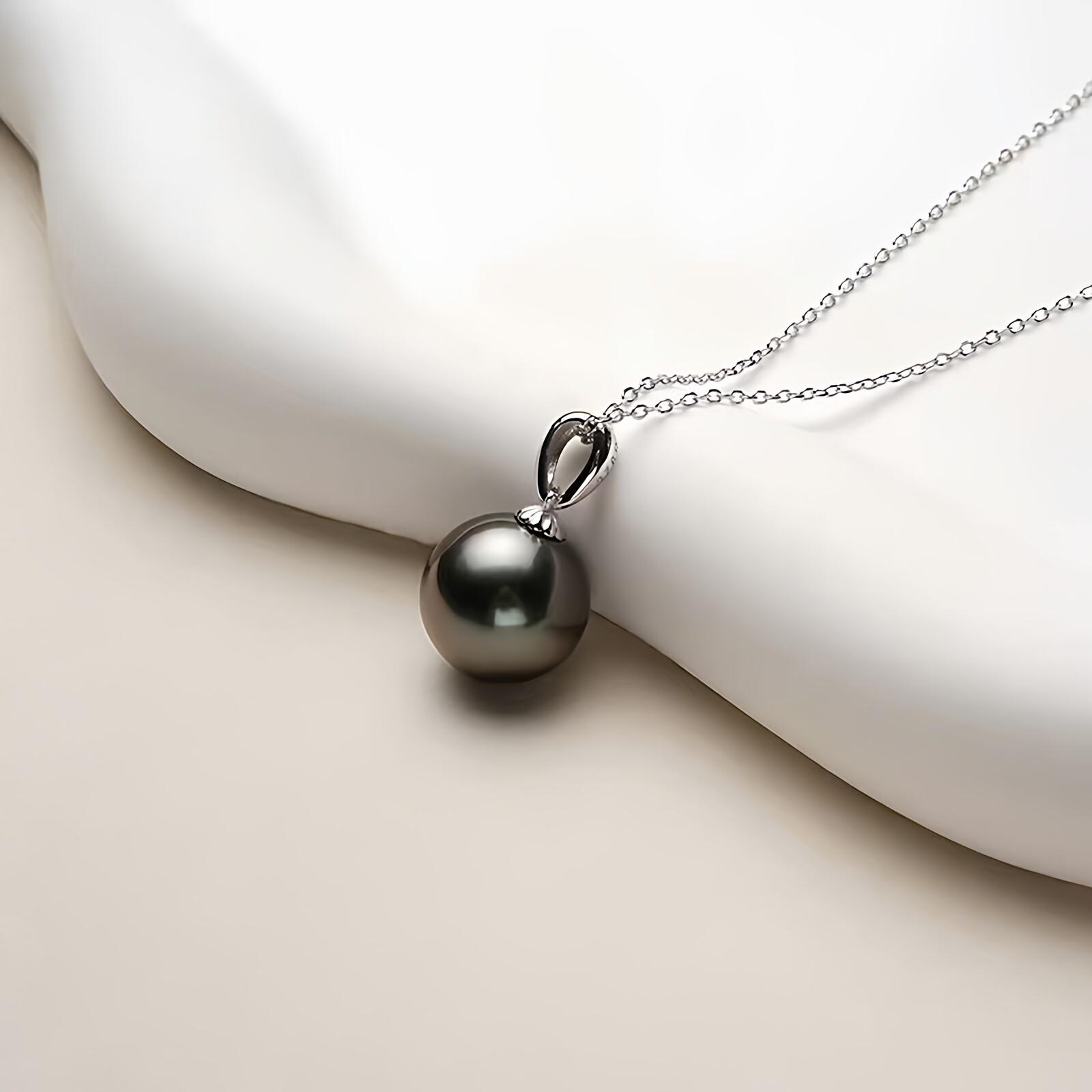 海水大溪地黑珍珠吊坠女S925银正圆强光瓜子扣项链气质高级感礼物