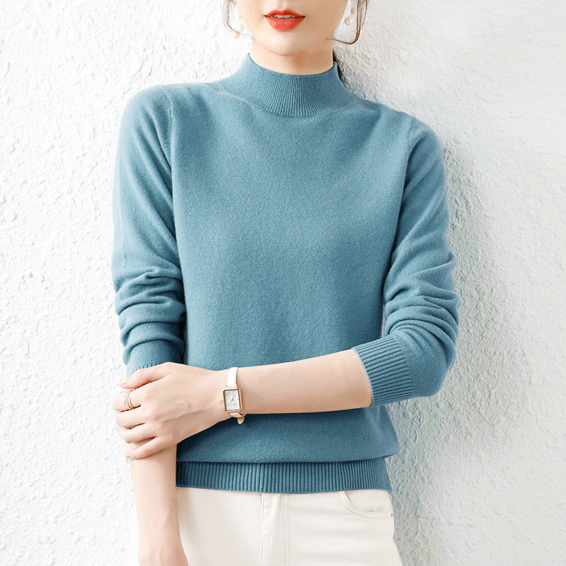 2025针织衫女秋冬新款羊绒半高领毛衣羊毛修身内搭纯色打底衫加厚