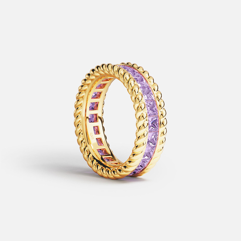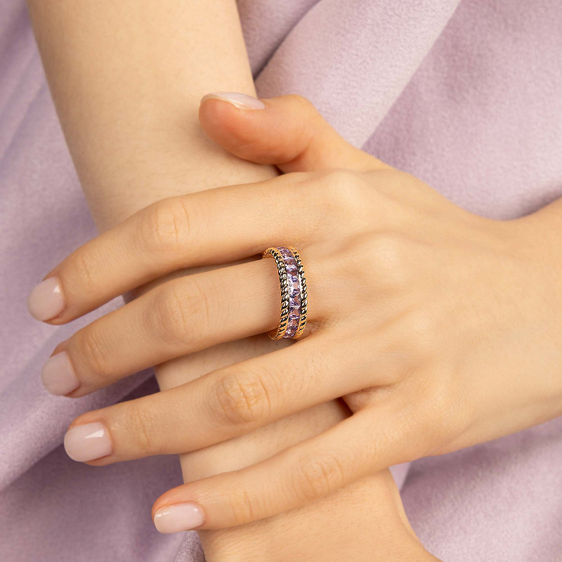 [春季新品]APM Monaco金黄色Lavande Torsade密镶戒指淡紫色简约