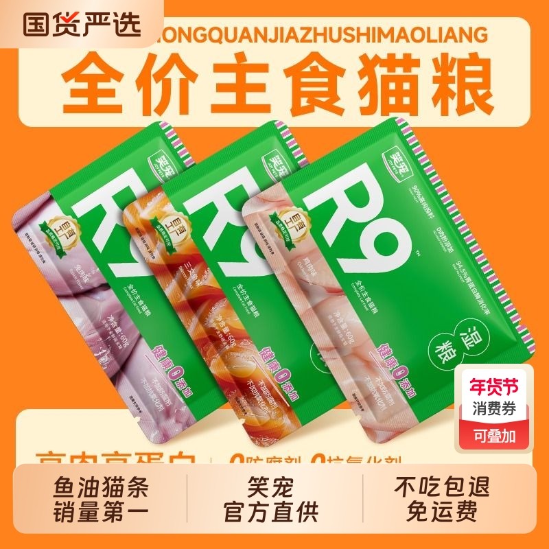 笑宠鱼油猫条100支零食猫条R9湿粮猫饭罐头成幼猫排名前十的品牌