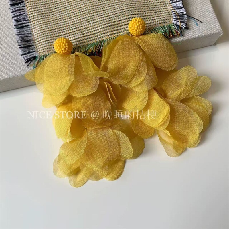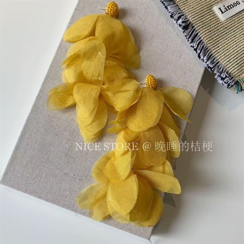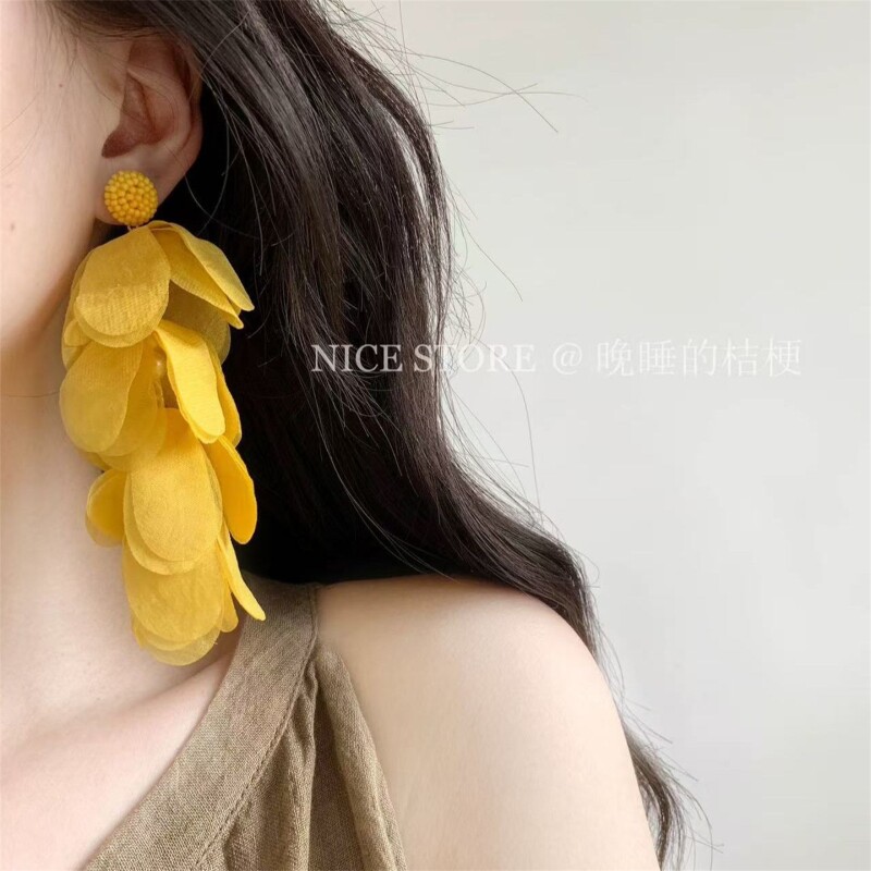 晚睡的桔梗黄色耳饰「碎金月」海边度假氛围耳环花瓣流苏夸张长款