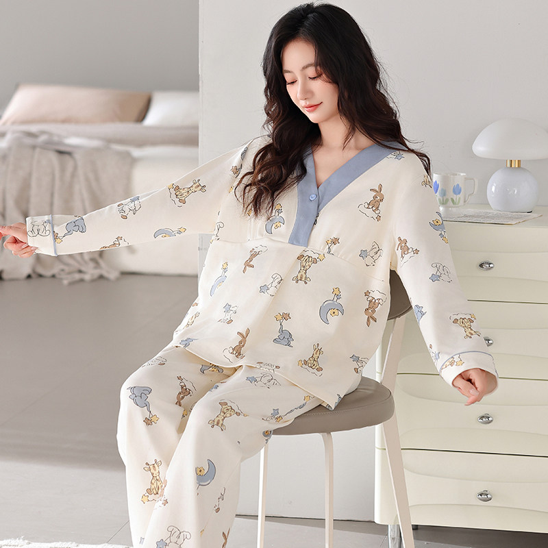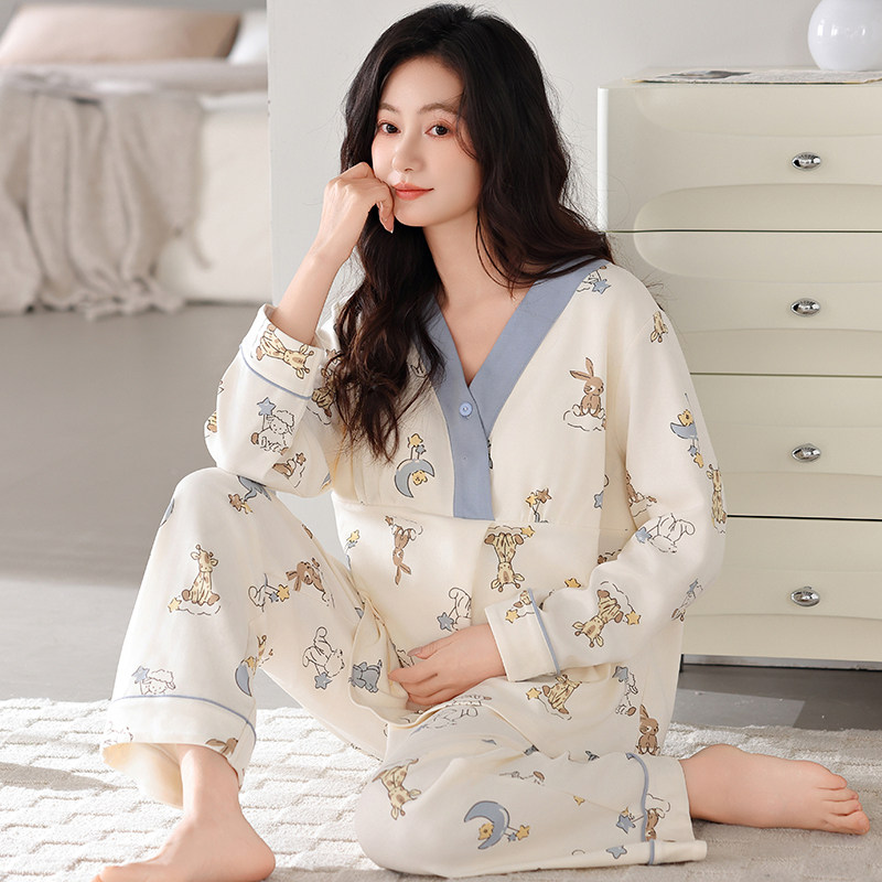 婧麒云慕丝月子服产后秋冬季纯哺乳家居服棉怀孕产妇孕妇睡衣套装