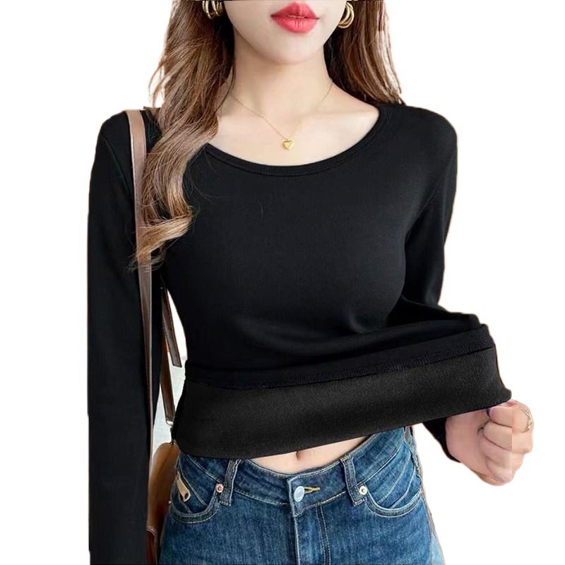 保暖加绒打底衫女加厚秋冬2025新款中老年内搭一体绒上衣长袖T恤