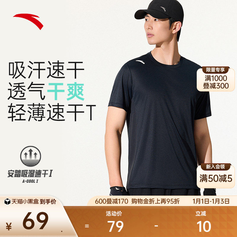 安踏速干T丨运动短袖t恤男士夏季跑步健身训练上衣透气针织衫