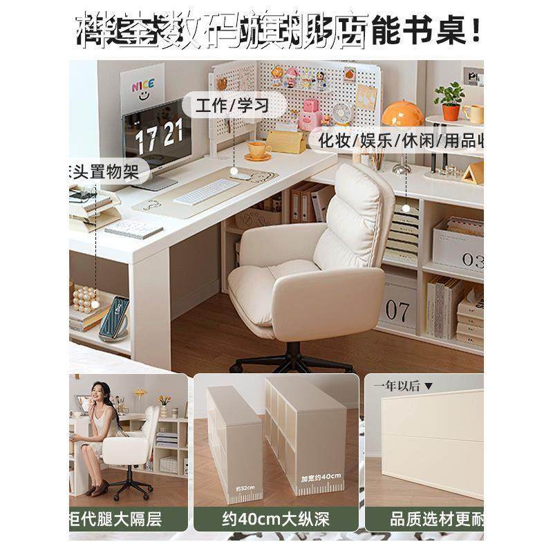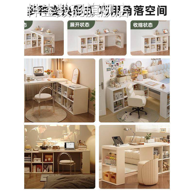 麦比梵实木飘窗书桌带柜子转角可伸缩桌子电脑桌床边梳化妆桌学生写字桌床笠拉车