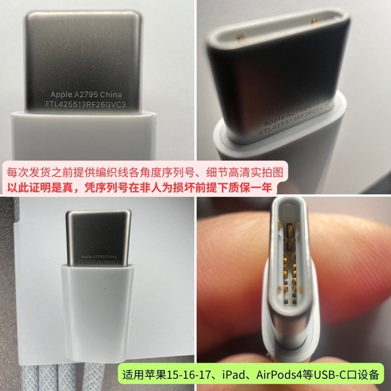适用iPhone16 17系列 原装拆机白色黑色编织线 35W原装拆机充电头