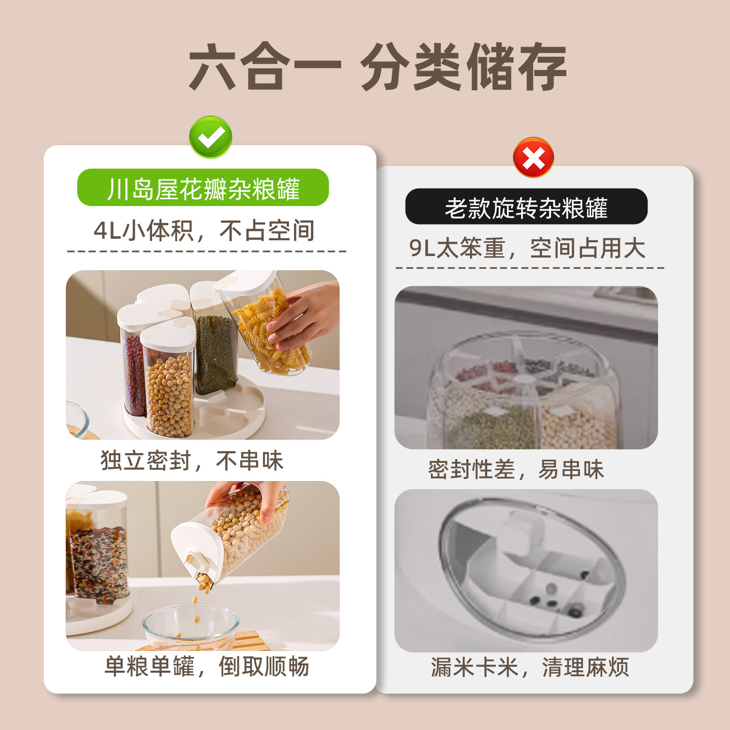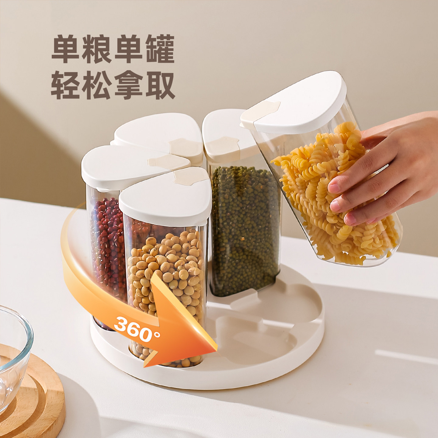 川岛屋旋转五谷杂粮收纳盒2025新款家用分格密封桶米箱豆子收纳罐