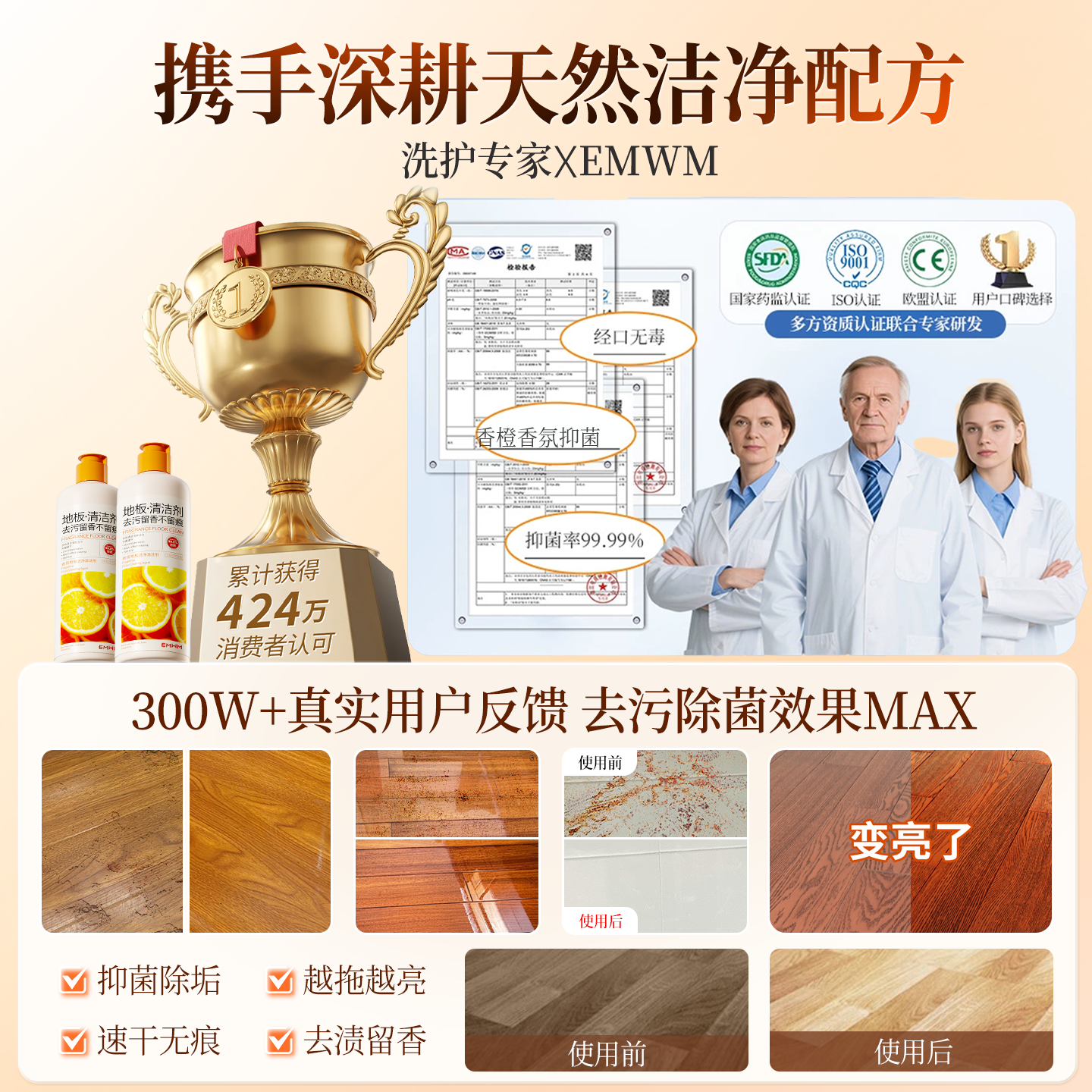 沫檬地板清洁剂强力去污抛光除菌瓷砖拖木地板专用清洁液官方旗舰