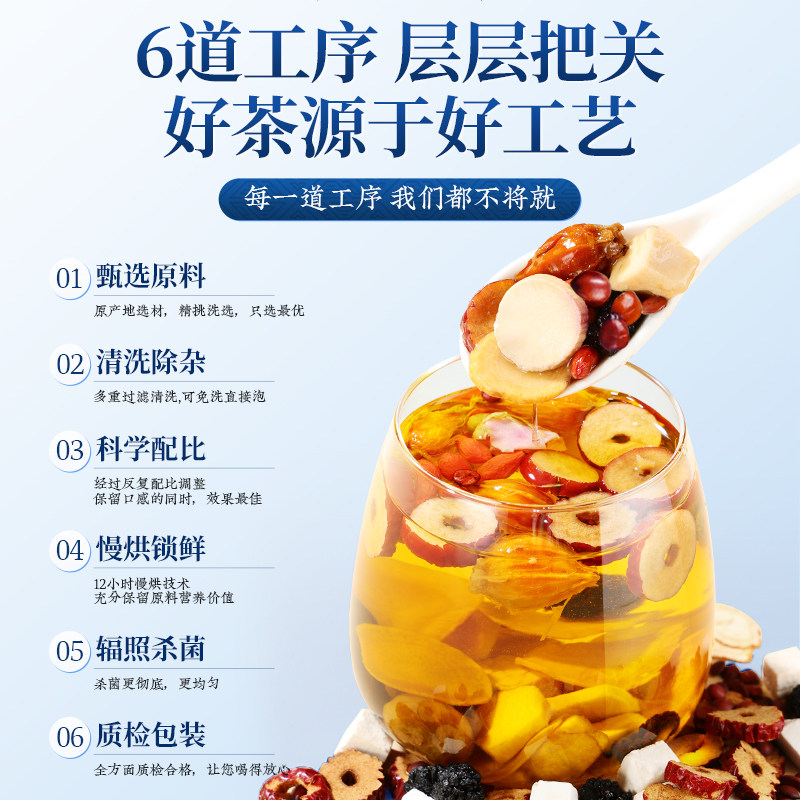 黄芪灵芝党参红枣桂圆组合枸杞茶补八宝茶花茶养女人气血茶养生茶
