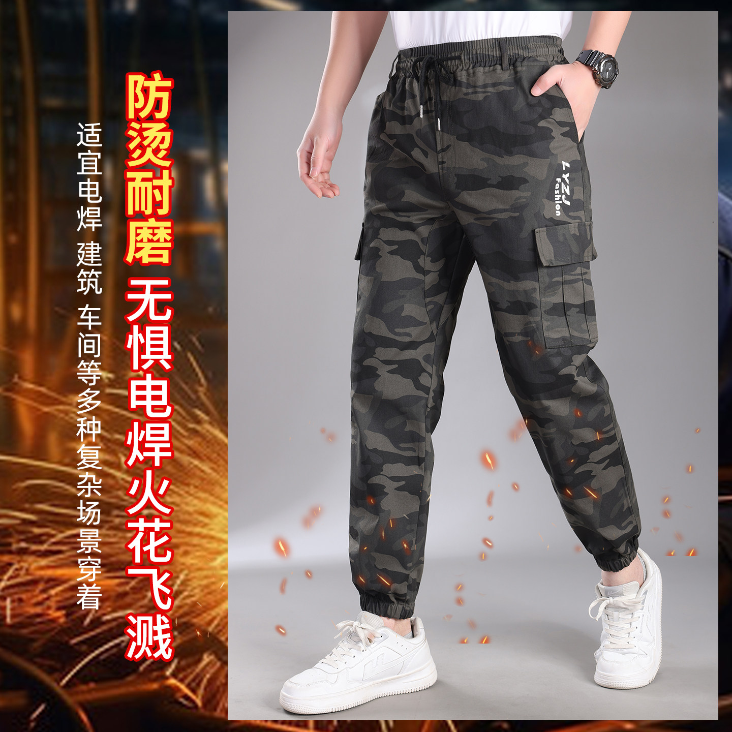工作服裤子男士加裆迷彩工装裤长裤劳保宽松耐磨抗撕裂干活劳保裤