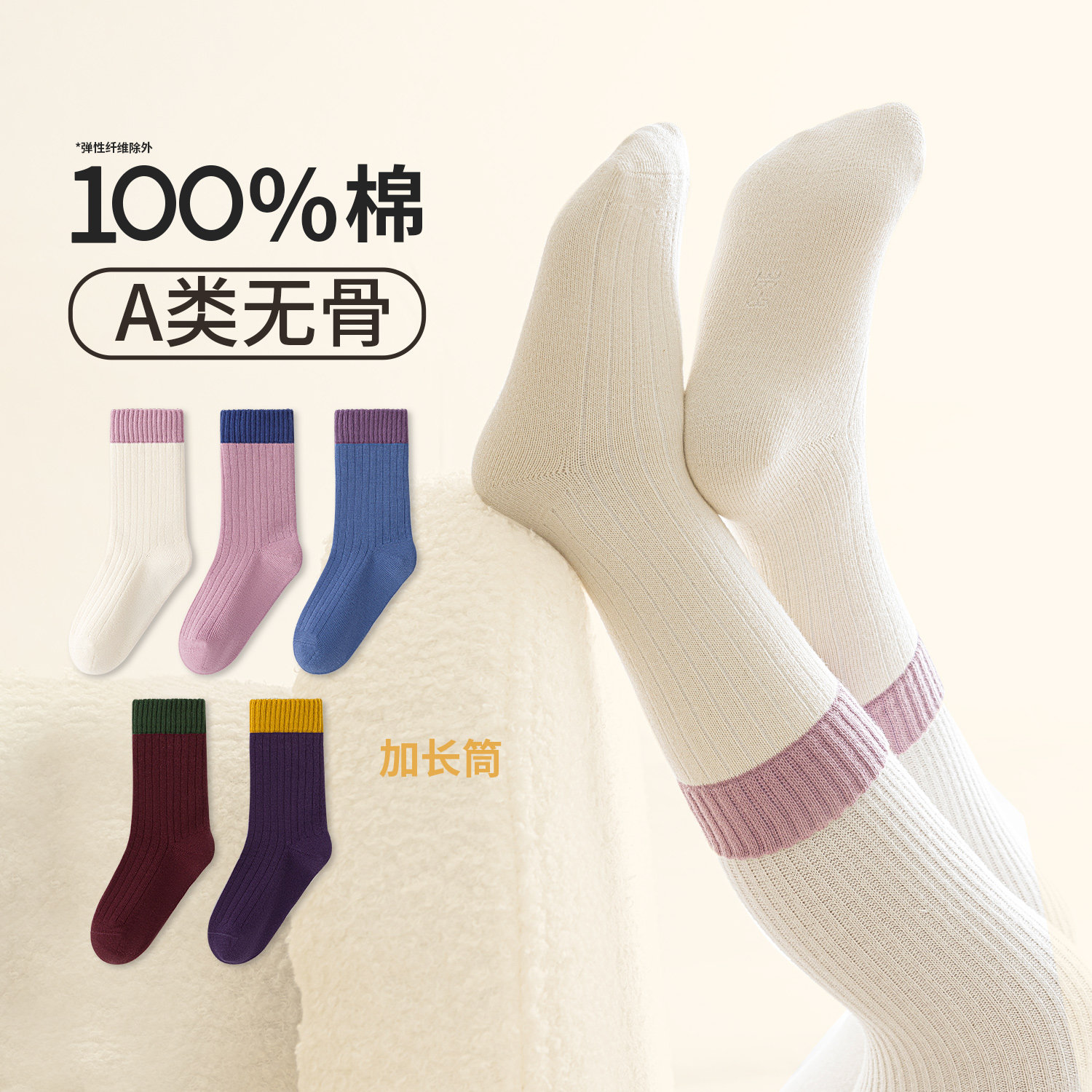 六指鼠纯棉无骨儿童袜子秋冬款抗起球小女孩中长筒女童全棉袜加长