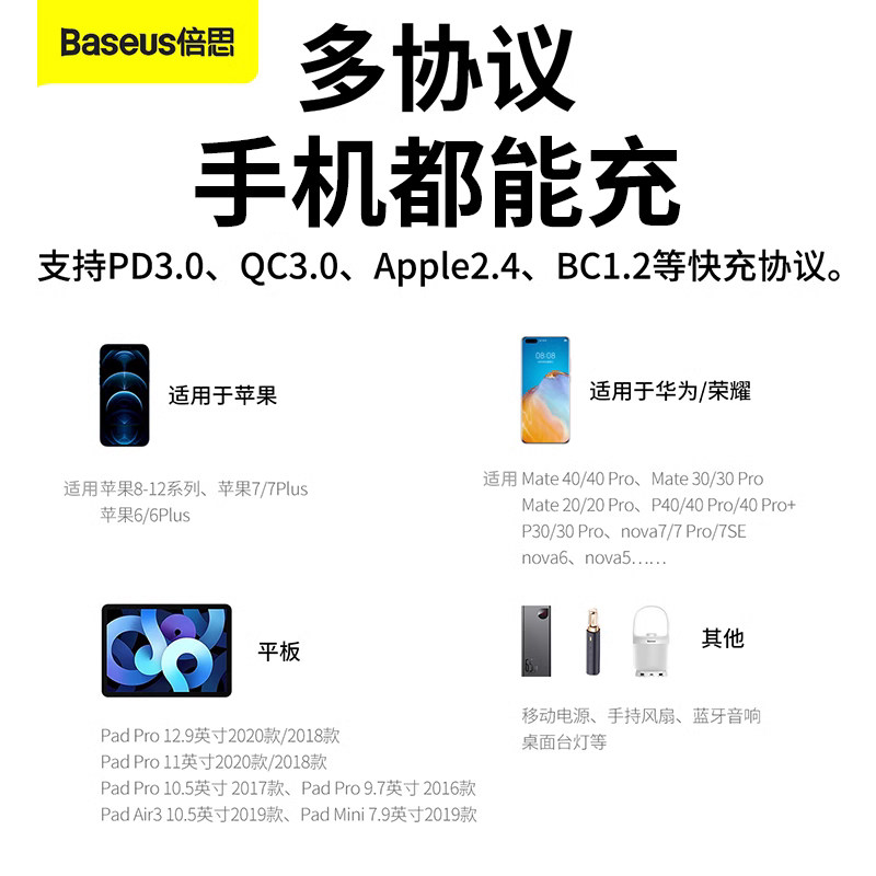 倍思充电头20w双口PD快充适用iPhone苹果华为小米12pro充电器13promax套装数据线手机多口usb+type-c插头通用
