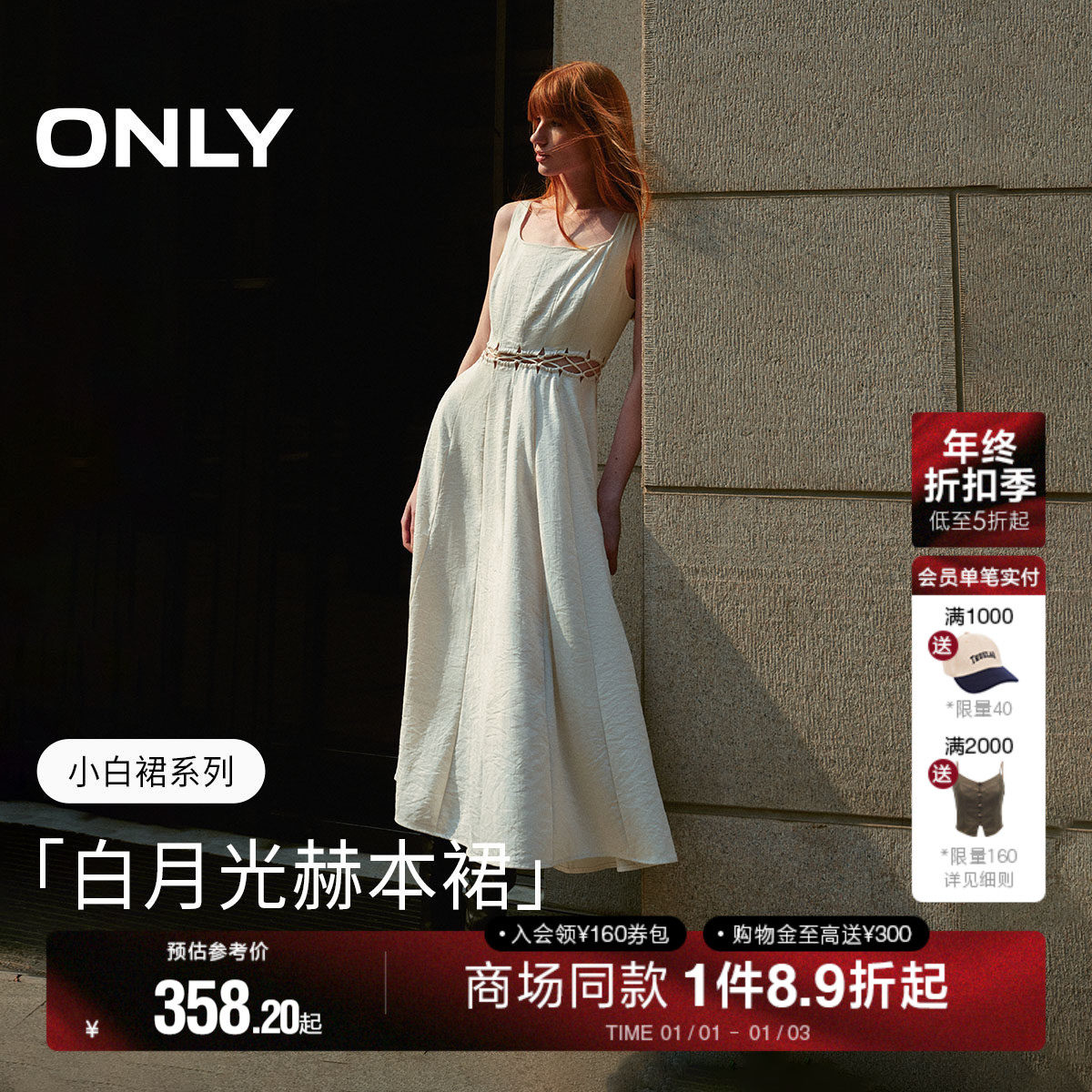 【觅光裙】ONLY2025夏季新款通勤镂空绑带静奢风长款吊带连衣裙女