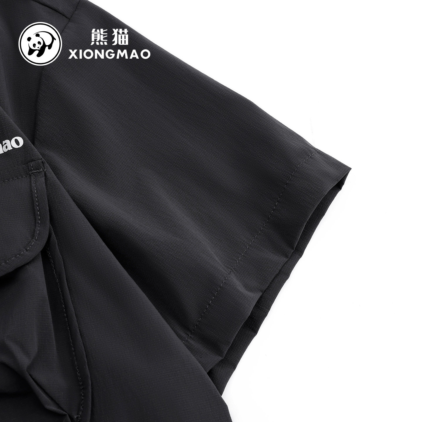 熊猫户外风短袖T恤女2026春夏新款宽松胸前口袋速干百搭上衣黑色