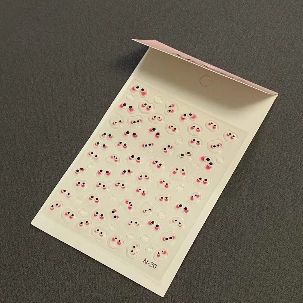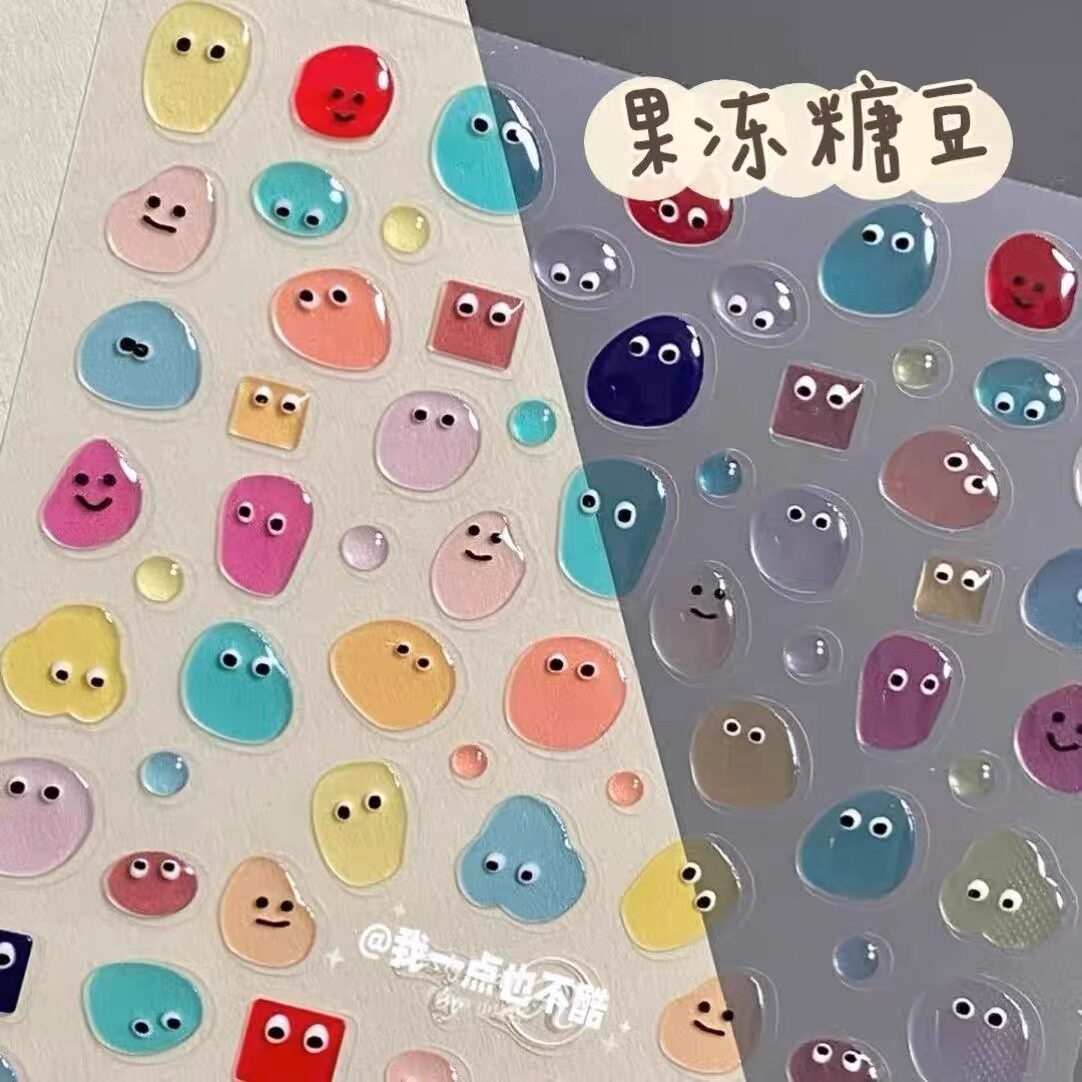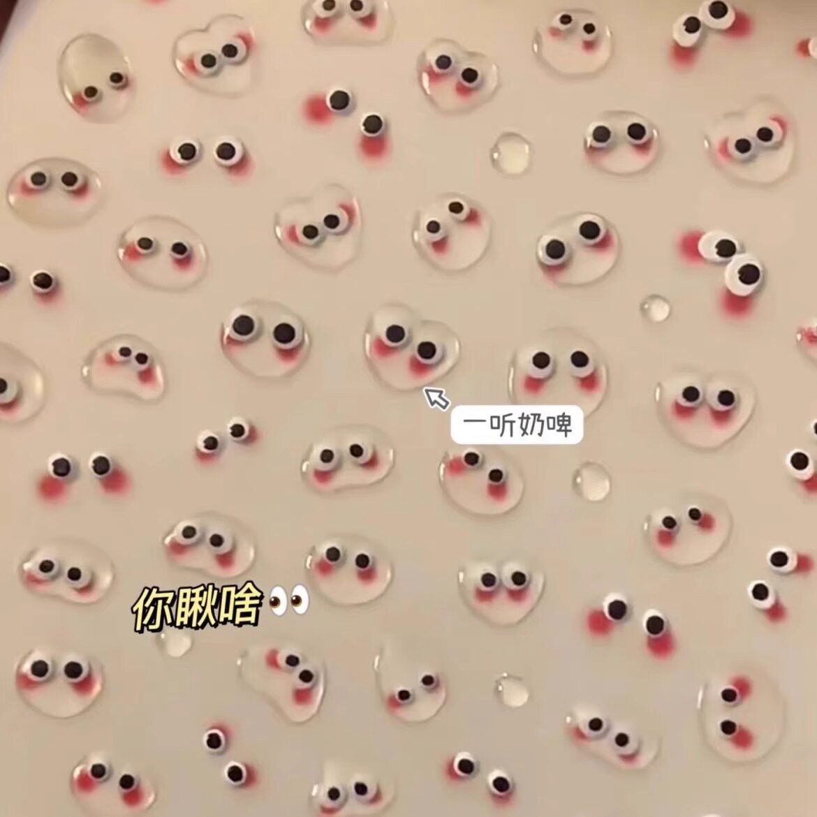 立体糖豆指甲贴2025新款3D立体浮雕透明小眼睛水滴搞怪表情美甲女孩儿童穿戴甲创意卡通小鼻嘎贴画装饰diy
