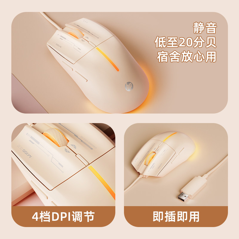 HP惠普鼠标有线静音电竞游戏专用台式电脑笔记本通用办公女生
