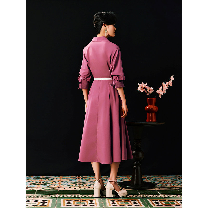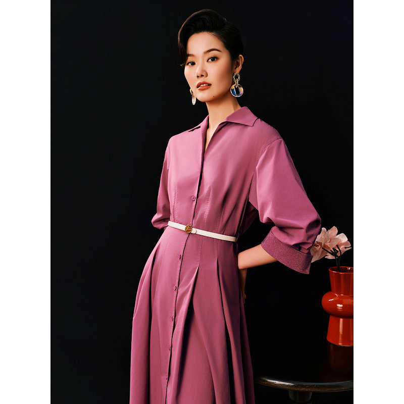 【1996系列】YINER音儿女装春季醋酸优雅翻领A字连衣裙