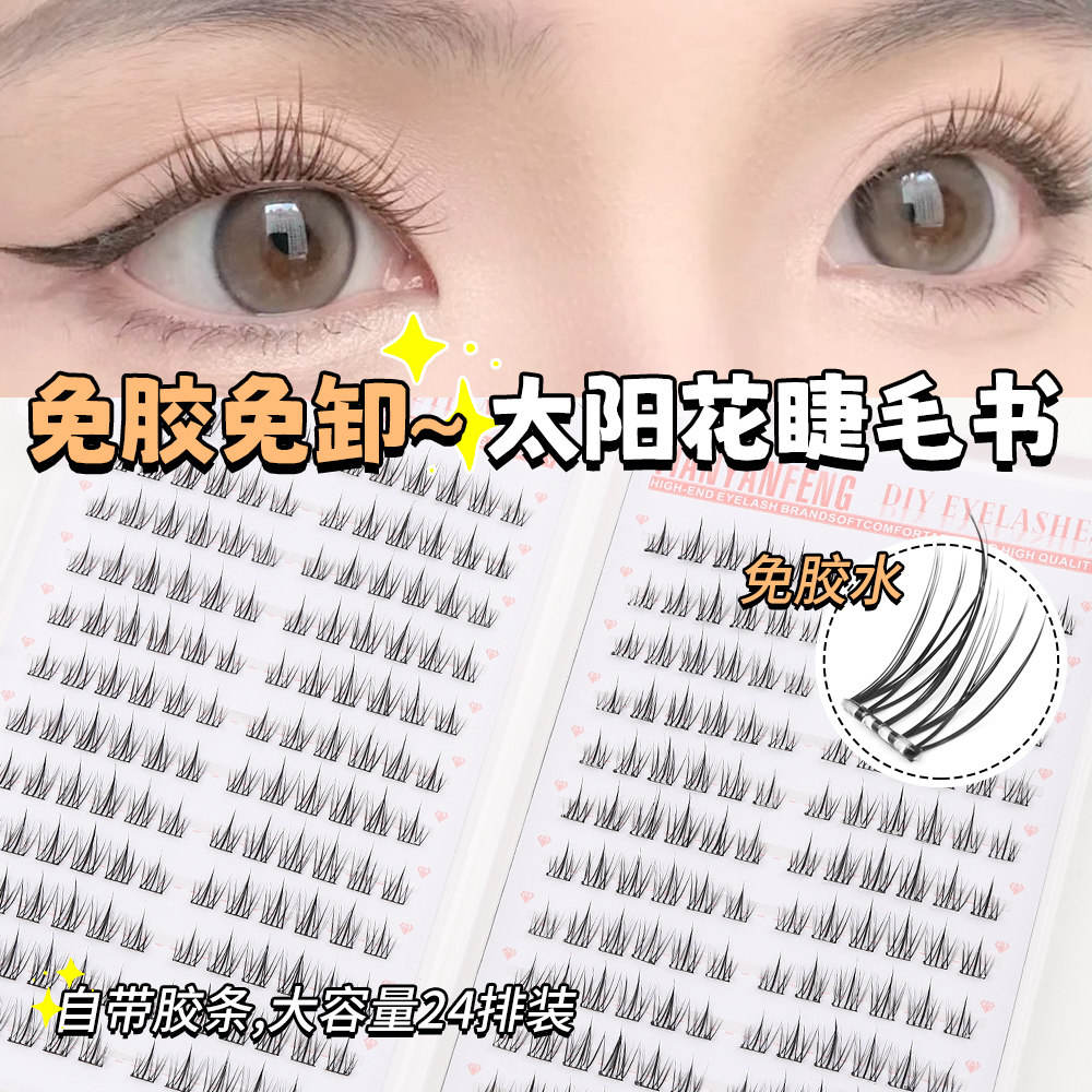 免胶太阳花睫毛书24排超大容量懒人新手分段式单簇自然卷翘