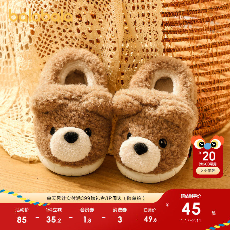 巴拉巴拉童鞋儿童秋冬棉拖鞋男童女童家居鞋可爱动物造型包跟棉拖
