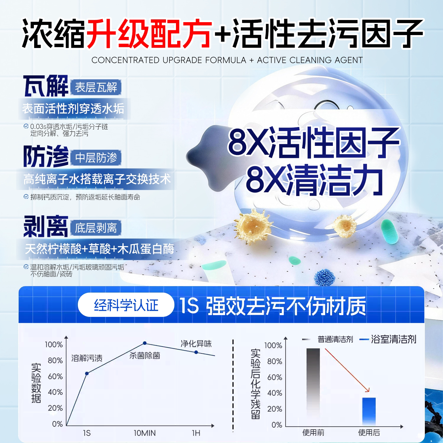 水卫士除菌净味浴室清洁剂卫生间除垢墙面去污玻璃顽固水垢清洗剂
