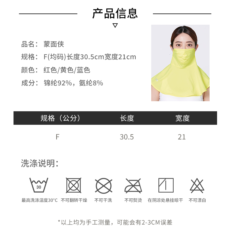 HOII/后益明星同款蒙面侠防晒遮阳面罩面纱全脸冰感透气抗尘口罩