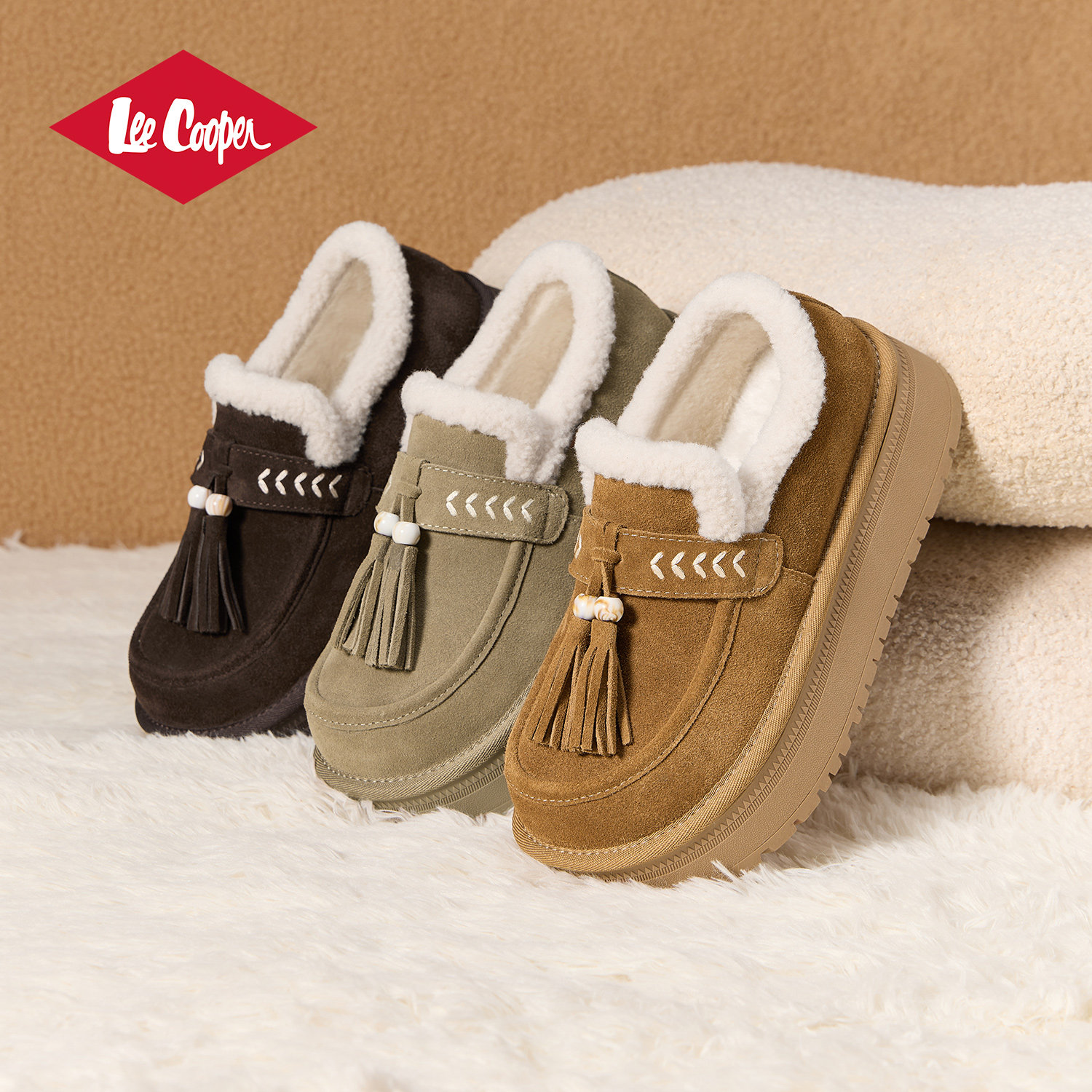 Lee Cooper复古雪地靴女款2025新款冬季真皮保暖棉鞋软底增高女鞋