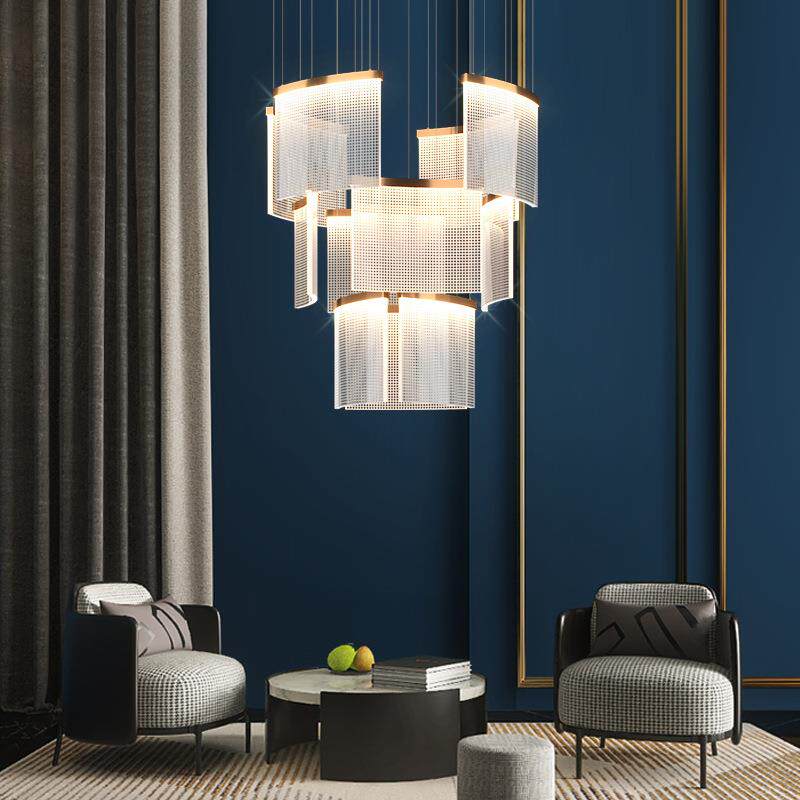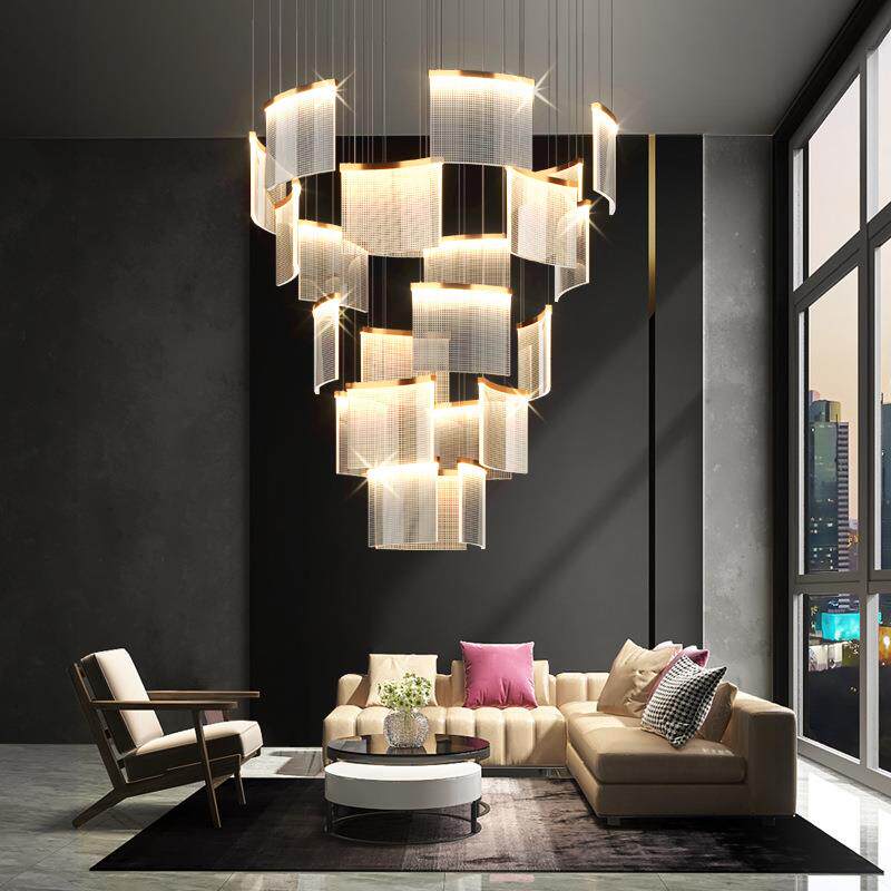 复式楼大吊灯现代简约大气客厅酒店大堂售楼部轻奢瓦片楼梯长吊灯