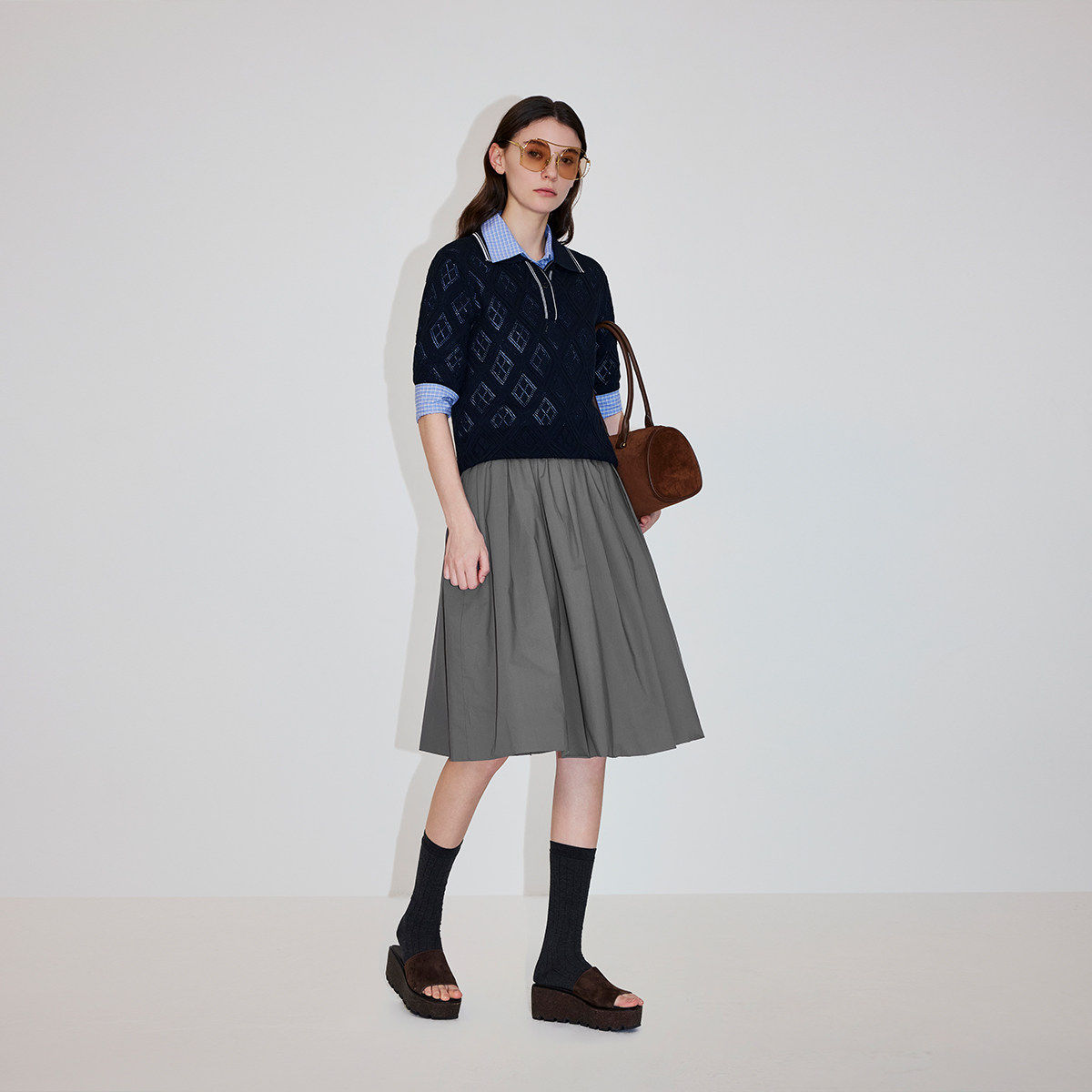 LIMONN |秋冬多颜色经典高腰显腿长A字百褶半身裙长裙