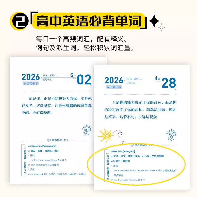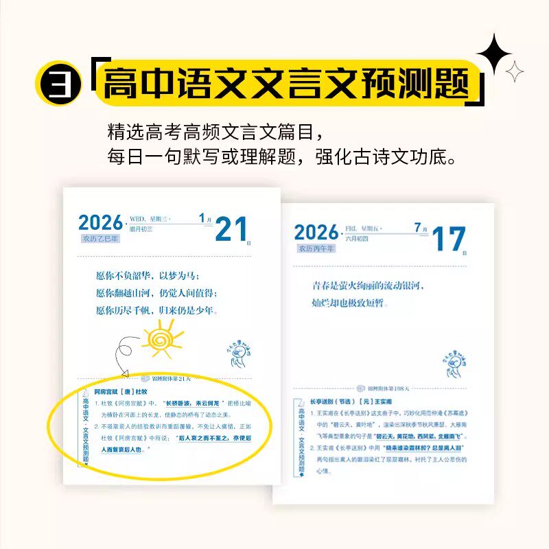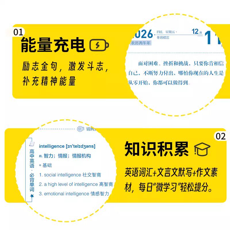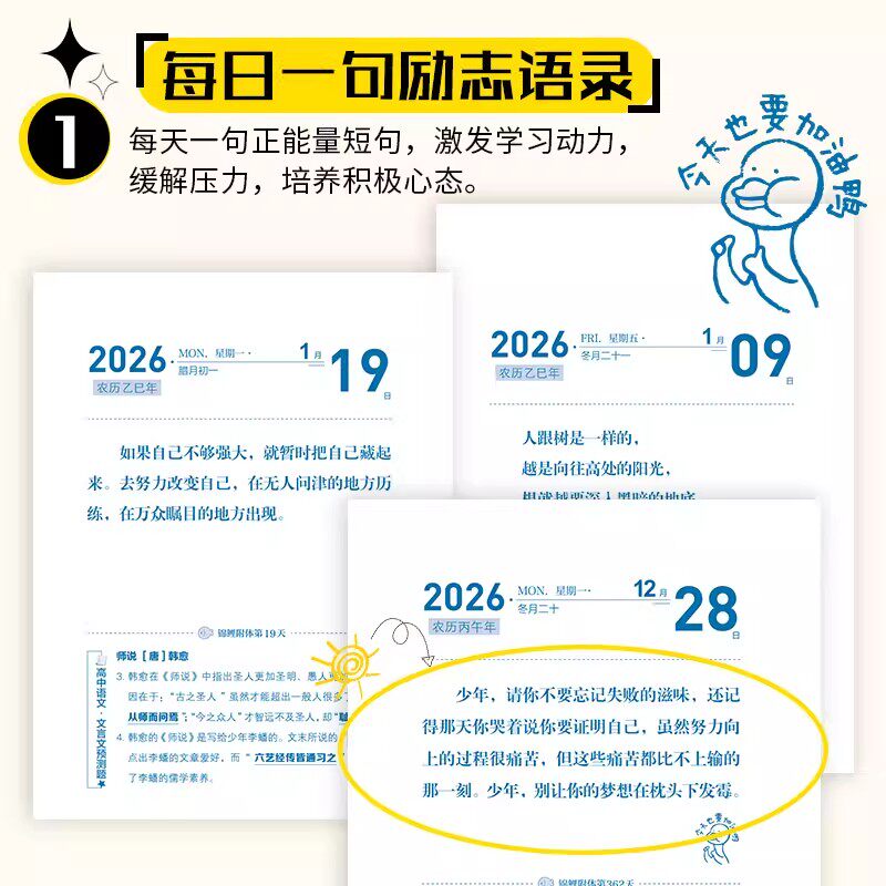 化茧成蝶2026年初中生励志日历+鱼跃龙门高中生励志金句日历语文英语考点梳理中考高考倒计时新款桌面台历本