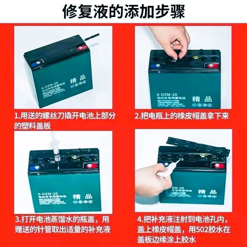 电动车电瓶修复液铅酸蓄电池超威天能通用电解液高效原厂蒸馏水