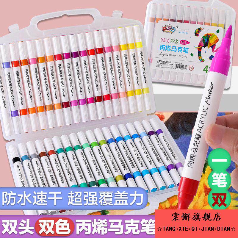 双头丙烯马克笔儿童水彩笔不透色可叠色笔芯小学生美术画画专用36/48色比心西炳漆碧玺笔烯咕卡笔防水手绘diy