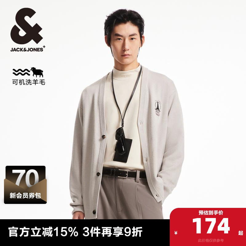 【可机洗】杰克琼斯秋季新款毛衣宽松开衫刺绣含6%羊毛针织衫男装