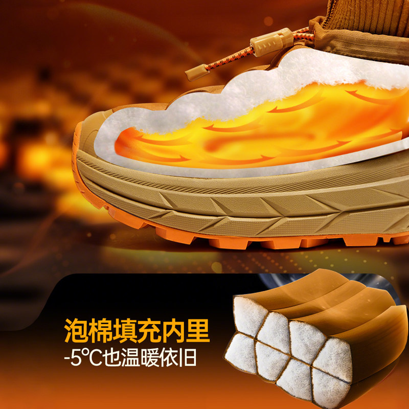 悍途加绒保暖棉鞋男士新款冬季厚底加厚防水男鞋东北运动雪地靴女