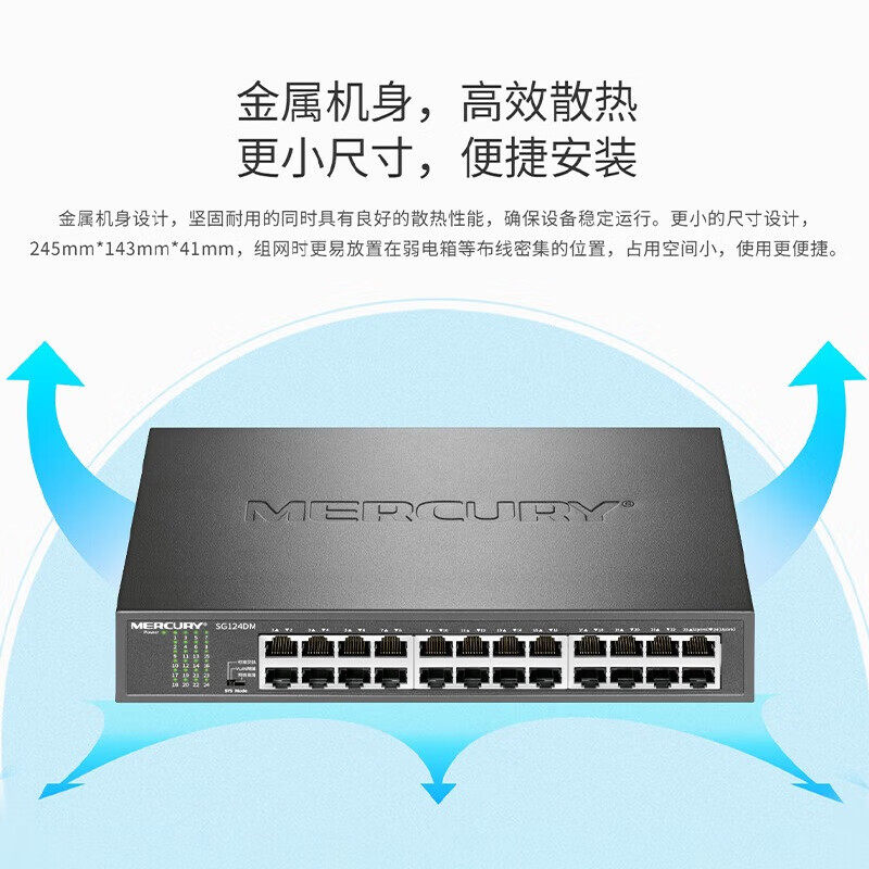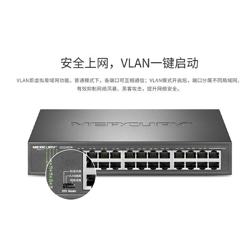 水星千兆交换机24口分线器家用路由器宿舍集线器家庭网络百兆网线端口监控SG124DM