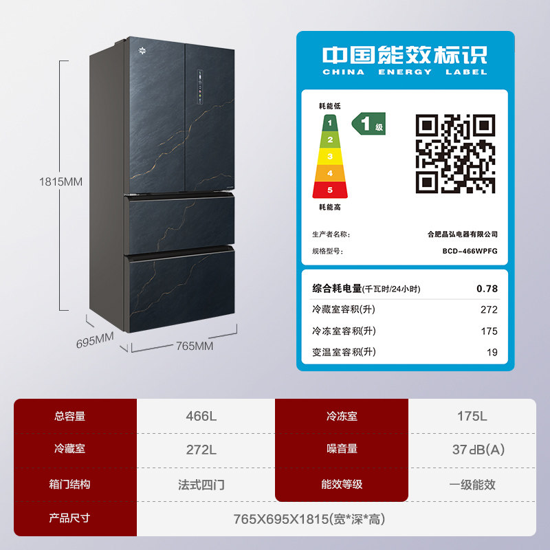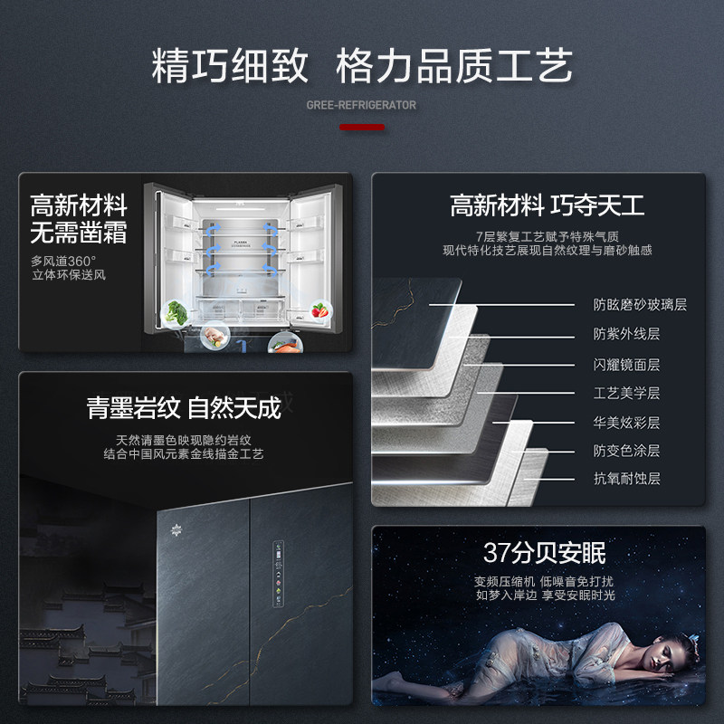 格力晶弘466L超冻保鲜1级变频风冷无霜法式多门超薄嵌入家用冰箱