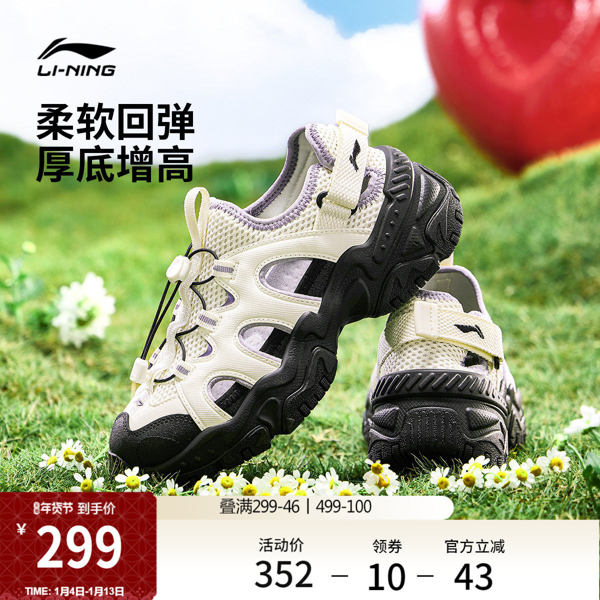 李宁红糖丨凉鞋女鞋新款夏季厚底增高户外防滑透气休闲运动鞋子