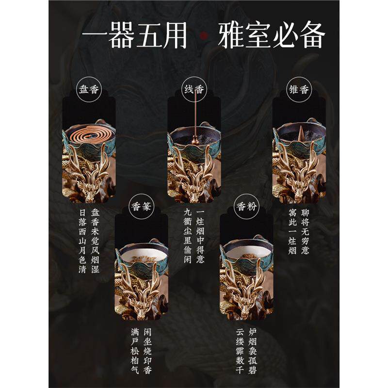 御龙博山全铜香炉家用室内盘香塔香熏香器中式客厅香薰炉摆件送礼