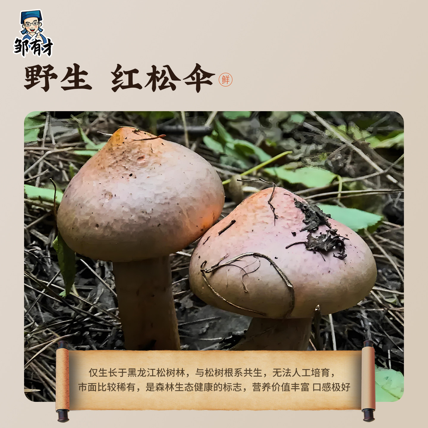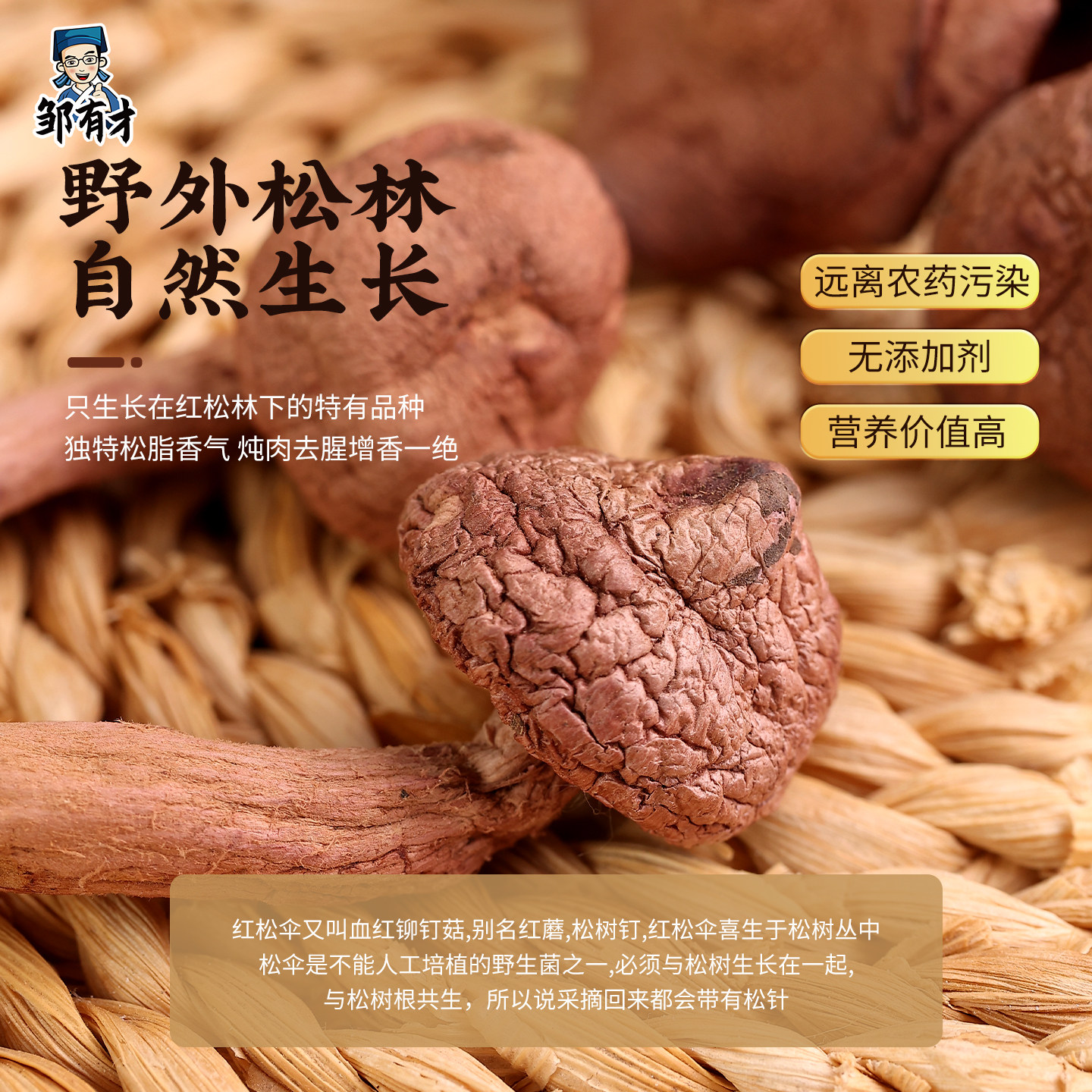 东北野生红蘑菇松树伞蘑菇丁榛蘑香菇干货松蘑鸡血蘑肉蘑菌菇煲汤