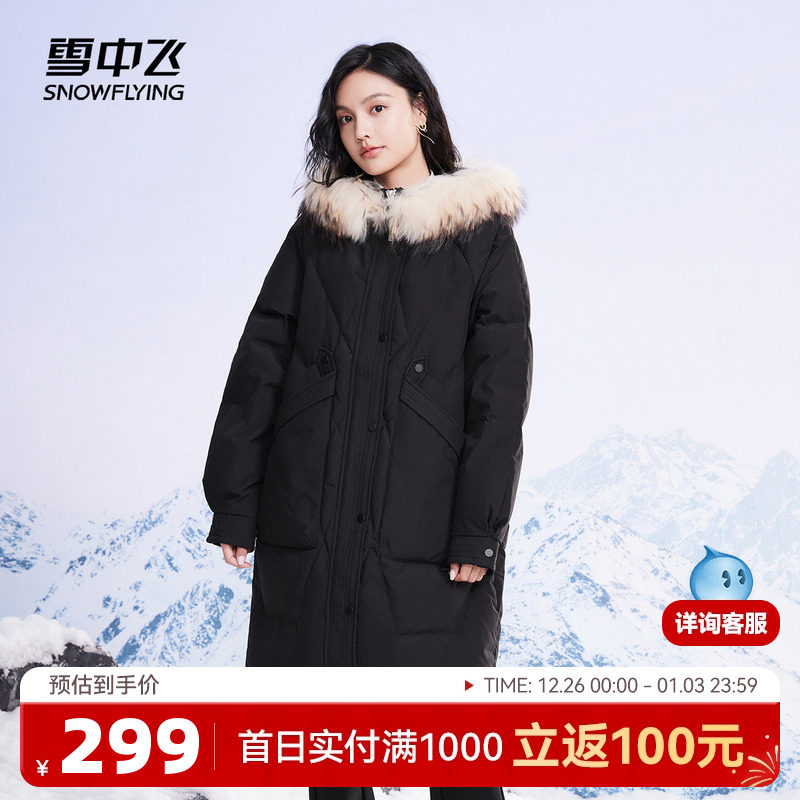 雪中飞秋冬新款大码中长款大毛领气质显瘦时尚保暖羽绒服