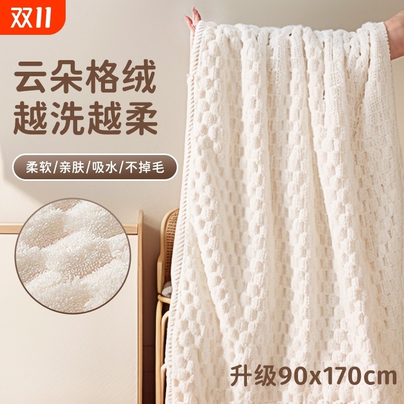 三利浴巾女珊瑚绒吸水非全棉纯棉裹巾大人毛巾三件套情侣2025新款
